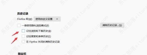 4、找到右侧“历史记录”下方的“记住浏览和下载历史”和“记住搜索和表单历史”,将其左侧小方框里的勾去掉即可。