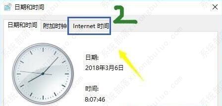 6、打开图示面板后,进入“internet时间”选项卡。