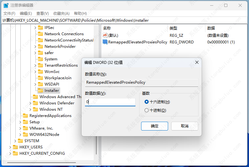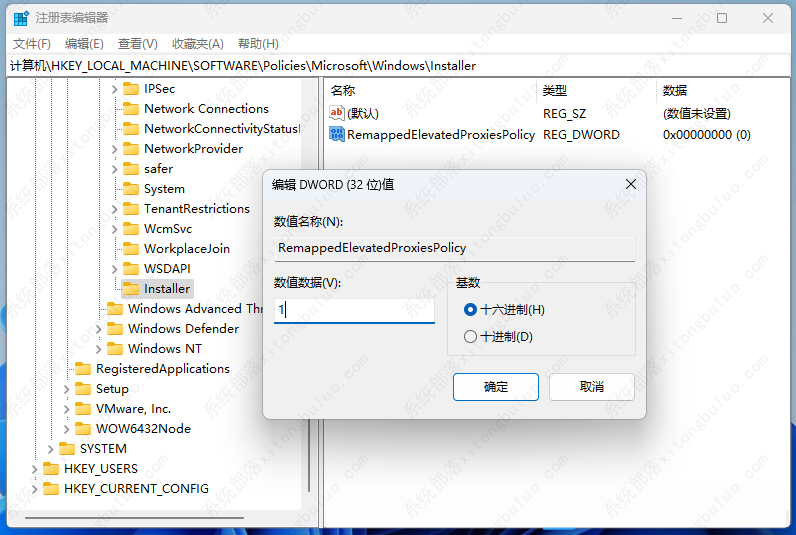 6、然后双击打开【RemappedElevatedProxiesPolicy】,将数值数据修改为【1】;
