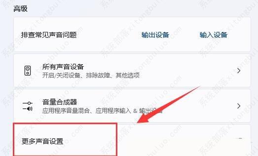 2、声音设置窗口,高级下,点击【更多声音设置】;