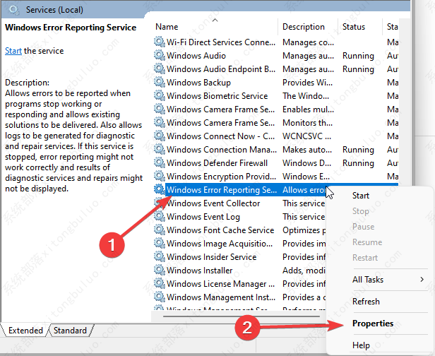 2、进入服务界面后,找到右侧中的“Windows 错误报告服务”选项右击选择“属性”。