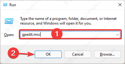 1、快捷键“win+R”开启运行对话框,输入“gpedit.msc”命令,点击确定打开组策略编辑器。