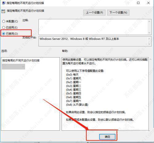 2、在左侧依次找到并进入“计算机配置-管理模块-Windows组件-Windows Defender防病毒程序-扫描”,找到右侧列表中的指定“每周的不同天运行计划扫描”,双击打开;