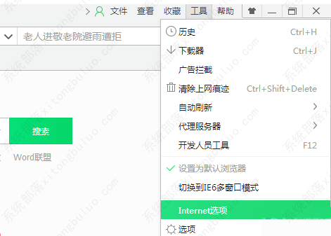 1、打开电脑浏览器上工具菜单,在弹出菜单中打开internet选项。