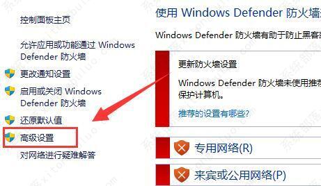 4、然后选择左侧的“高级安全Windows defender”选项后,点击“添加”按钮。