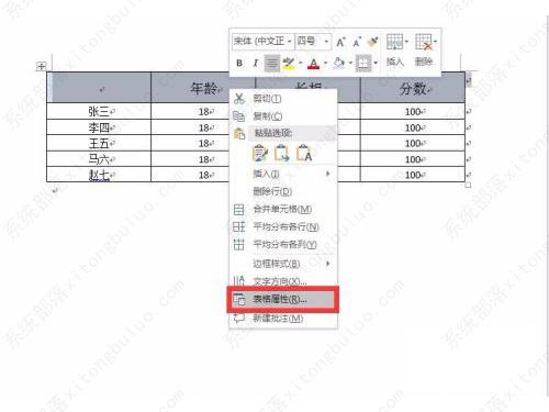 1、选择需要设置背景颜色的单元格,点击右键,选择表格属性。
