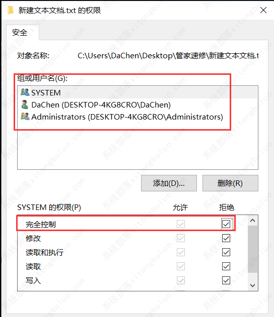 4、选择“组或用户名”下面的每一项,都在“完全控制”右侧将“拒绝”勾选上,点击确定保存。