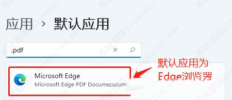 3、这时我们会看见在当前电脑中打开PDF文件的默认方式为“Edge浏览器”。
