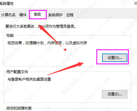 3、点击“高级”选项卡,再点击“设置”。