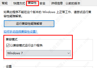 3、鼠标右键游戏,“属性-兼容性-以兼容性运行这个程序-Windows7”。
