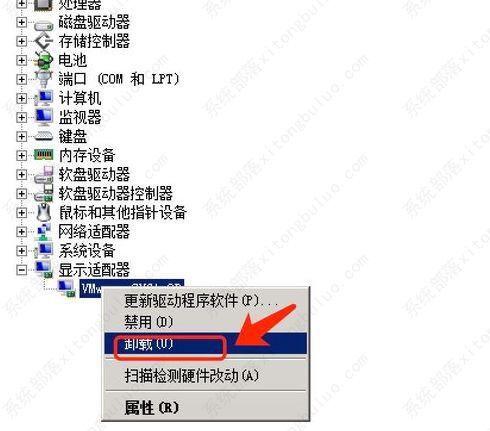 3、展开“显示适配器”部分、右键单击列出的适配器,然后选择“卸载”。选中“删除此设备的驱动程序软件”复选框。