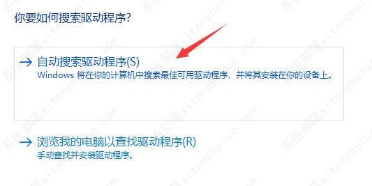 4、等待窗口界面弹出,选择“自动搜索驱动程序”。