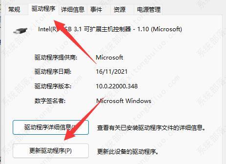 5、如果关闭后还是不行,再试试进入“驱动程序”,选择“更新驱动程序”。