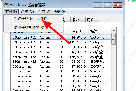 2、进入窗口后,点击左上角的“文件”中的“新建任务”选项,然后输入“Powershell”,回车打开。