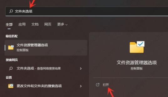 1、点击下方任务栏中的开始,在搜索框中输入“文件夹选项”并打开。