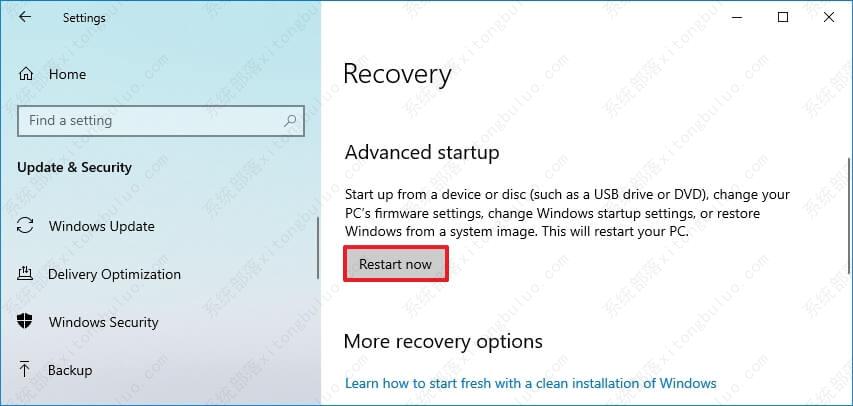 4、在“高级启动”部分下,单击立即重新启动按钮。