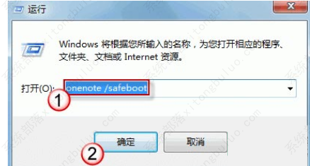 2、在运行命令框中,键入onenote /safeboot, 然后按一下“确定”按钮。