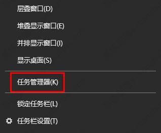 1、右击任务栏空白处,选择选项列表中的“任务管理器”。