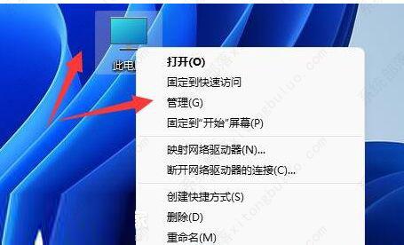 1、右击桌面上的“此电脑”,选择菜单中的“管理”打开。