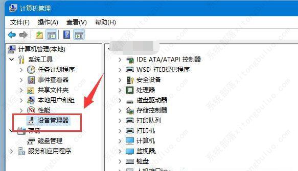 2、进入新窗口后,点击左侧“系统工具”下方的“设备管理器”。