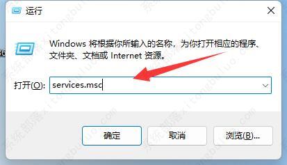 2、接着输入“services.msc”回车打开服务。