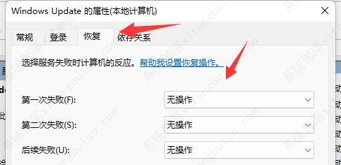 5、再将“恢复”下的选项都改成“无操作”就可以关闭自动升级了。