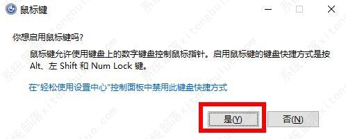 4、确定后,我们就可以使用小键盘来代替鼠标了。