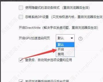 4、点击“开启GPU加速渲染网页”下拉中的“开启”即可。
