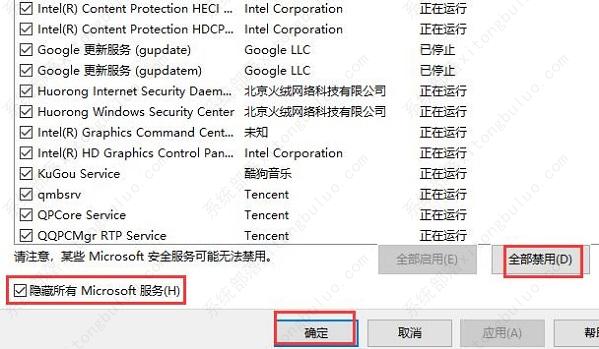 Win+ R输入“msconfig”→确定,服务→勾选隐藏所有的Microsoft服务去掉不需要执行的服务。