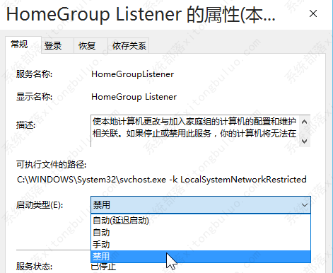这样,就关闭了“家庭组”功能。win8时代就有的家庭组功能会不断读写硬盘,造成硬盘占用高,这个问题在win10中依然存在。
