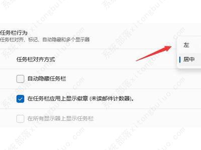3、在任务栏对齐方式中,想要修改到左侧的用户,点击选择左即可。想要修改到右边或者是居中的用户,也选择相应的按钮即可。