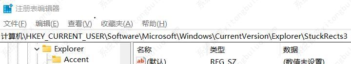 3、将如下路径复制到注册表路径中“\HKEY_CURRENT_USER\Software\Microsoft\Windows\CurrentVersion\Explorer\StuckRects3”。