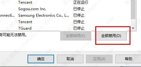6、点击顶部”启动”,右击“状态”显示为“已启动”的项,选择“禁用”。