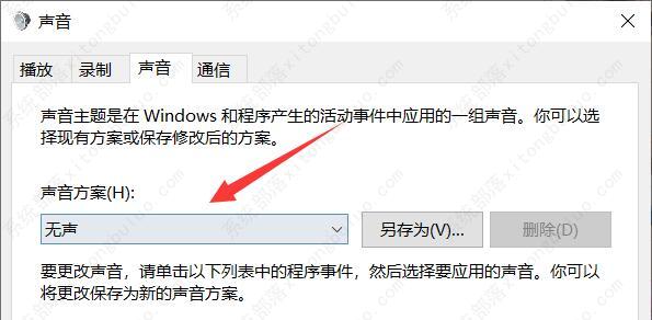 3、然后在声音方案里将它改为“无声”。