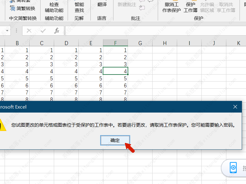 5、这时我们点击被锁定的单元格区域,会看到该区域已经被成功保护了,无法修改。