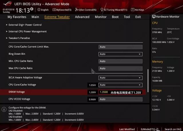 再看Dram Voltage的设定,此时也从默认的1.2V变更成为XMP里的1.35V。