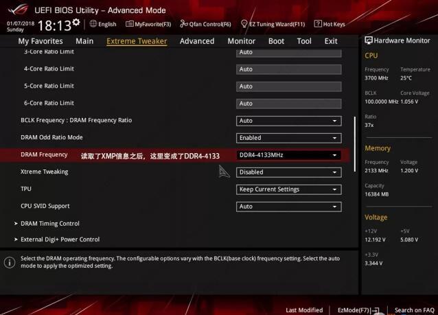 然后往下翻,可以看到内存的频率设定也自动变成了DDR4-4133。
