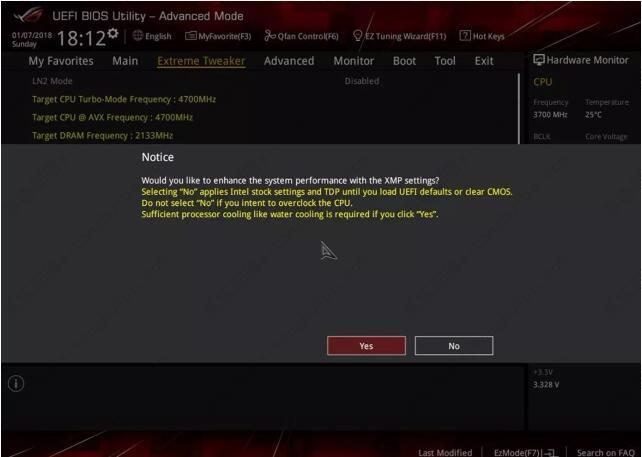 选择了XMP之后,会跳出一个窗口。选择yes。