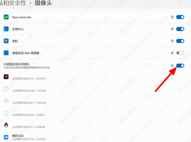 3、在摄像头界面,开启【让桌面应用访问相机】右侧的开关,这样电脑上画面就可以正常地出现。