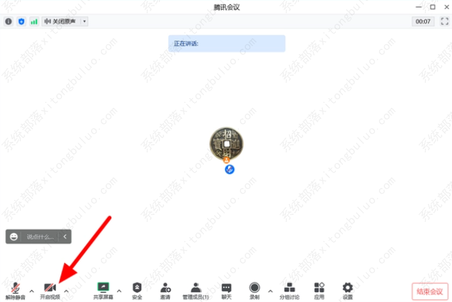 在腾讯会议的会议界面,单击【开启视频】,这样就恢复视频画面成功。