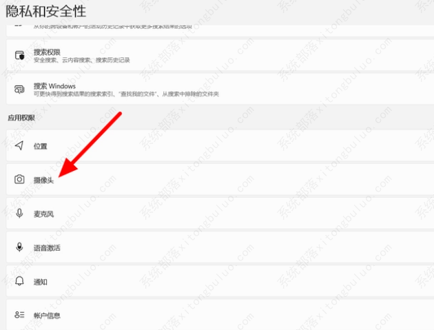 2、在隐私和安全性页面,找到应用权限,打开应用权限下的【摄像头】。