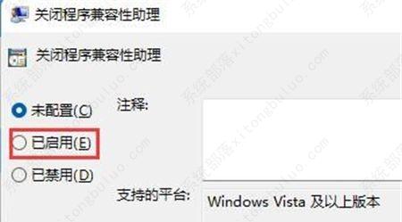 4、点击“应用程序兼容性”,双击打开右侧的“关闭程序兼容性助理”。