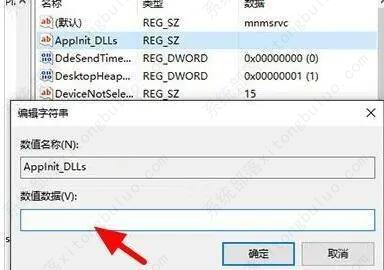 3、然后找到右侧中的“APPINIT_DLLS”将其双击打开,在窗口中将“数值数据”中的内容删除,点击确定保存即可。