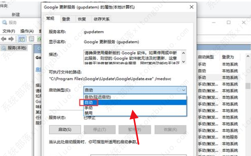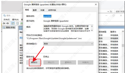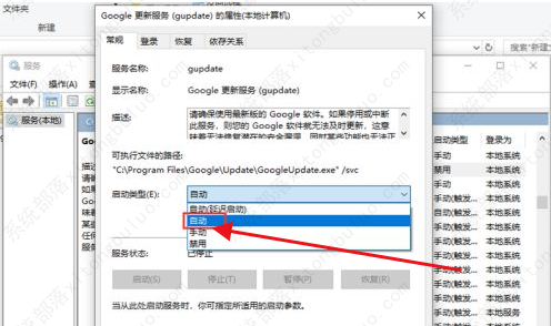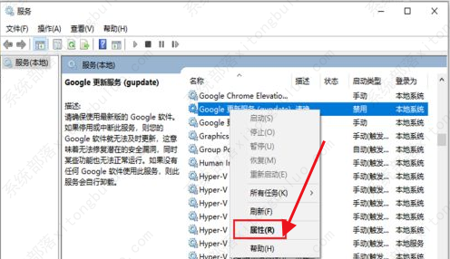 7、进入服务界面后,点击其中的“Google更新服务(gupdate)”选中右击选择“属性”打开。