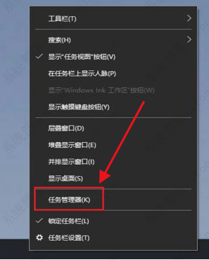 4、右击下方任务栏的空白处,选择菜单选项中的“任务管理器”打开。