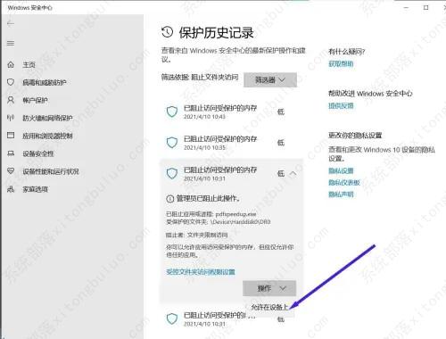 出现在这里的条目已经是被保护的状态了。如果需要此条目正常执行,点击【允许在设备上…】即可。
