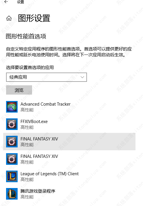 8、添加常用的游戏并且设置为高性能(无论是不是同一个显卡)。