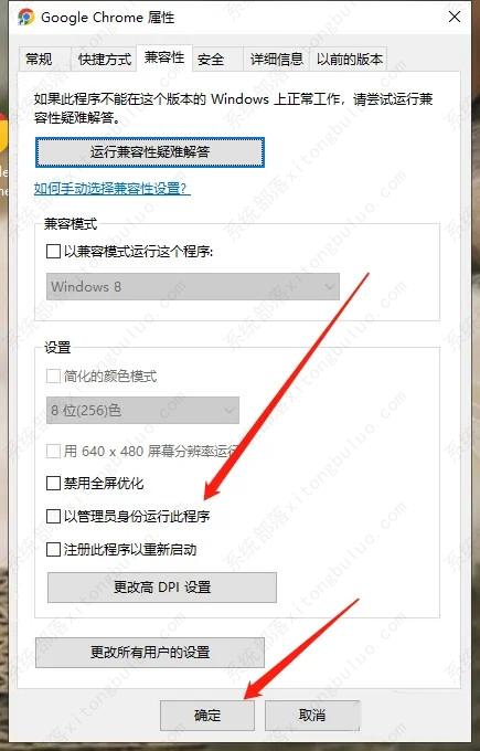 最后取消勾选以管理员身份运行此程序,并点击确定即可。