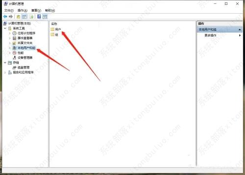 在弹出界面中,在左侧选择本地用户和组,再点击中间的用户选项。