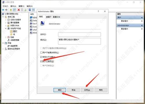 最后在弹出窗口中,取消勾选帐户已禁用,并点击应用和确定即可。